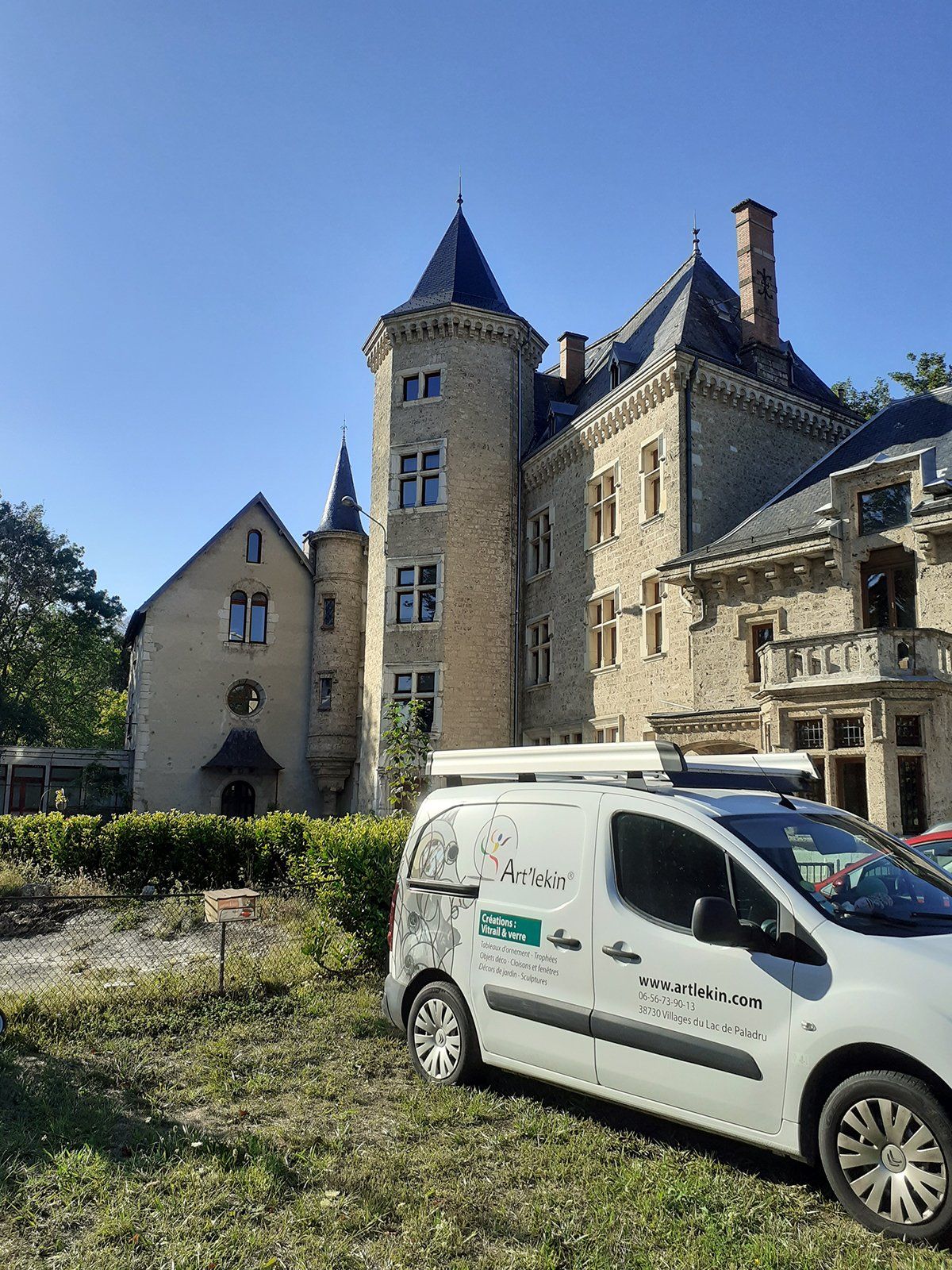 C'est un lieu magnifique qui a hébergé les travaux de restauration de vitraux : le château de Saint-Geoire en Valdaine.
