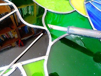 Technique : 2 panneaux en techniques traditionnelle et Tiffany combinées