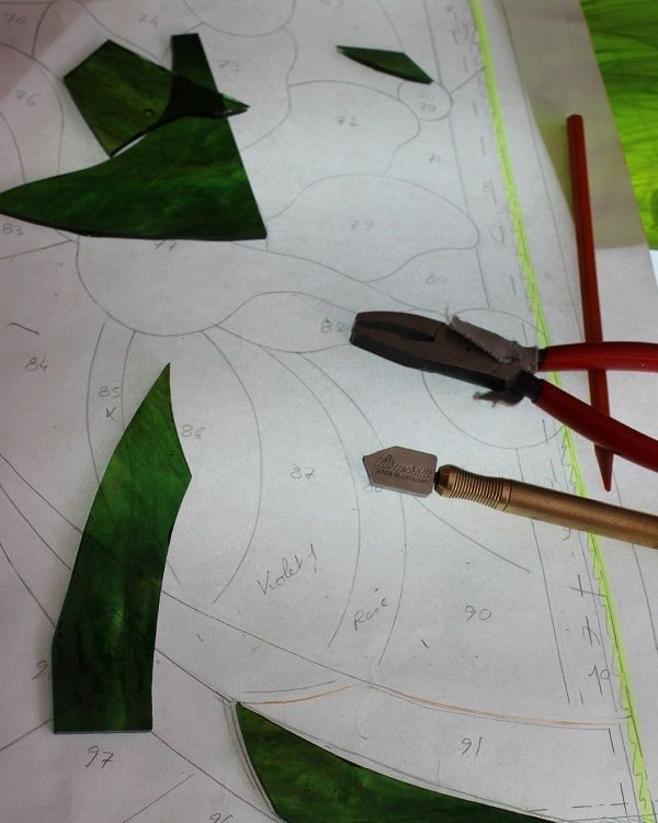 Après avoir finalisé la maquette pour notre vitrail sur-mesure, il est temps de passer aux étapes suivantes : le choix et la coupe des verres.