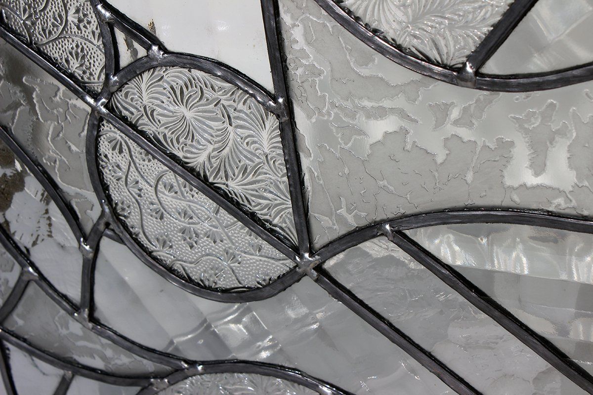 Pour ce petit vitrail "Tolérance", j'ai joué avec plusieurs verres imprimés, agrémentés de quelques touches de couleurs pastel.