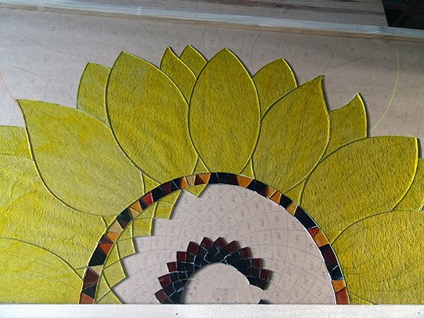 Pour ce vitrail "Tournesol", j’ai proposé d'enrichir les pétales du tournesol et les rayons du soleil de traits de détails.