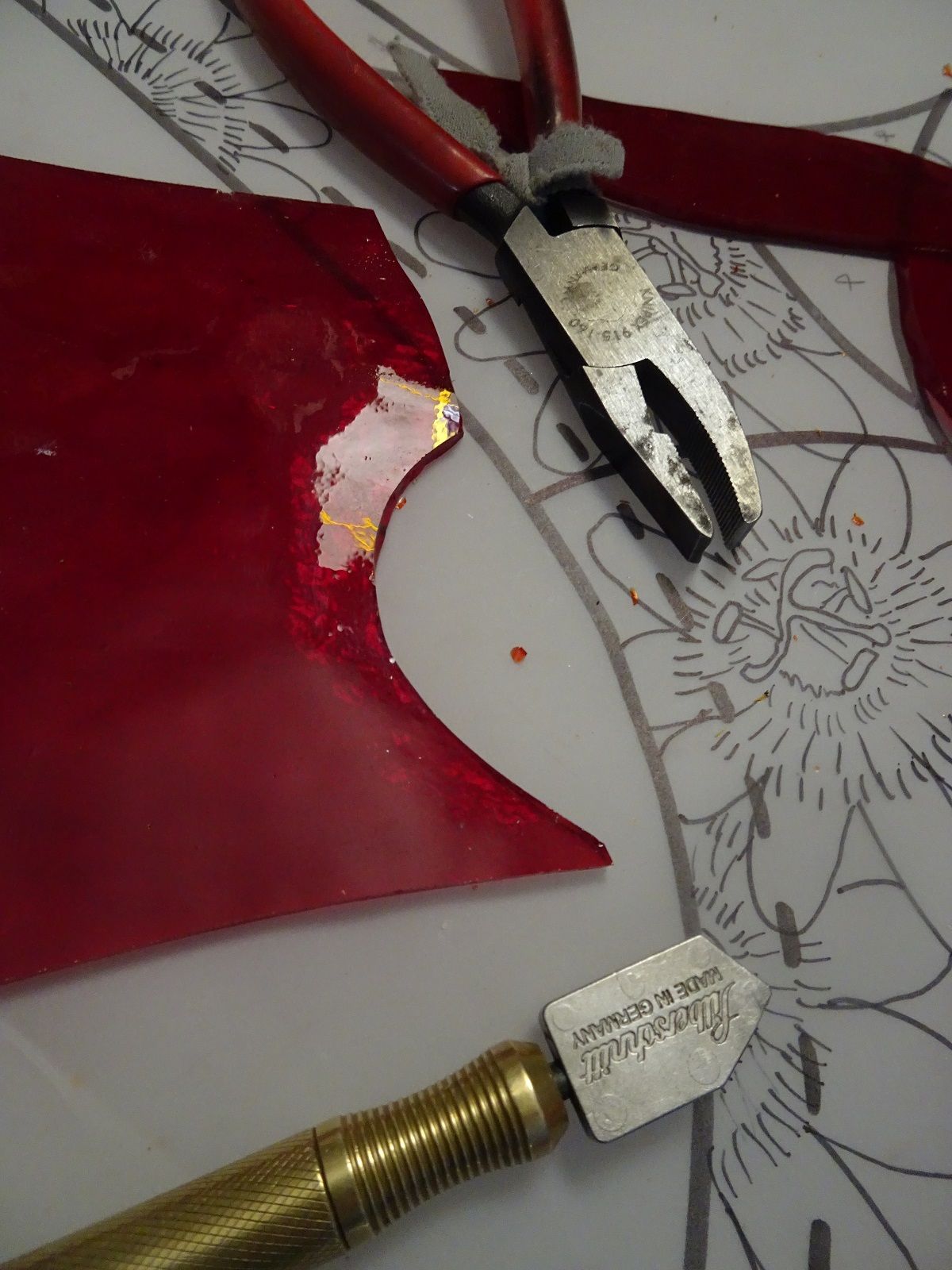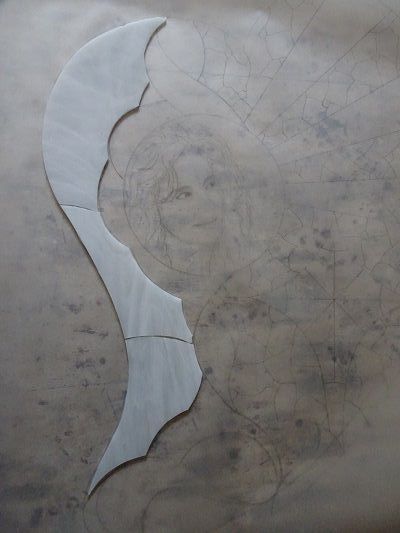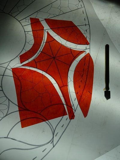 Les pièces de verre prennent forme, fidèles aux lignes du dessin.
