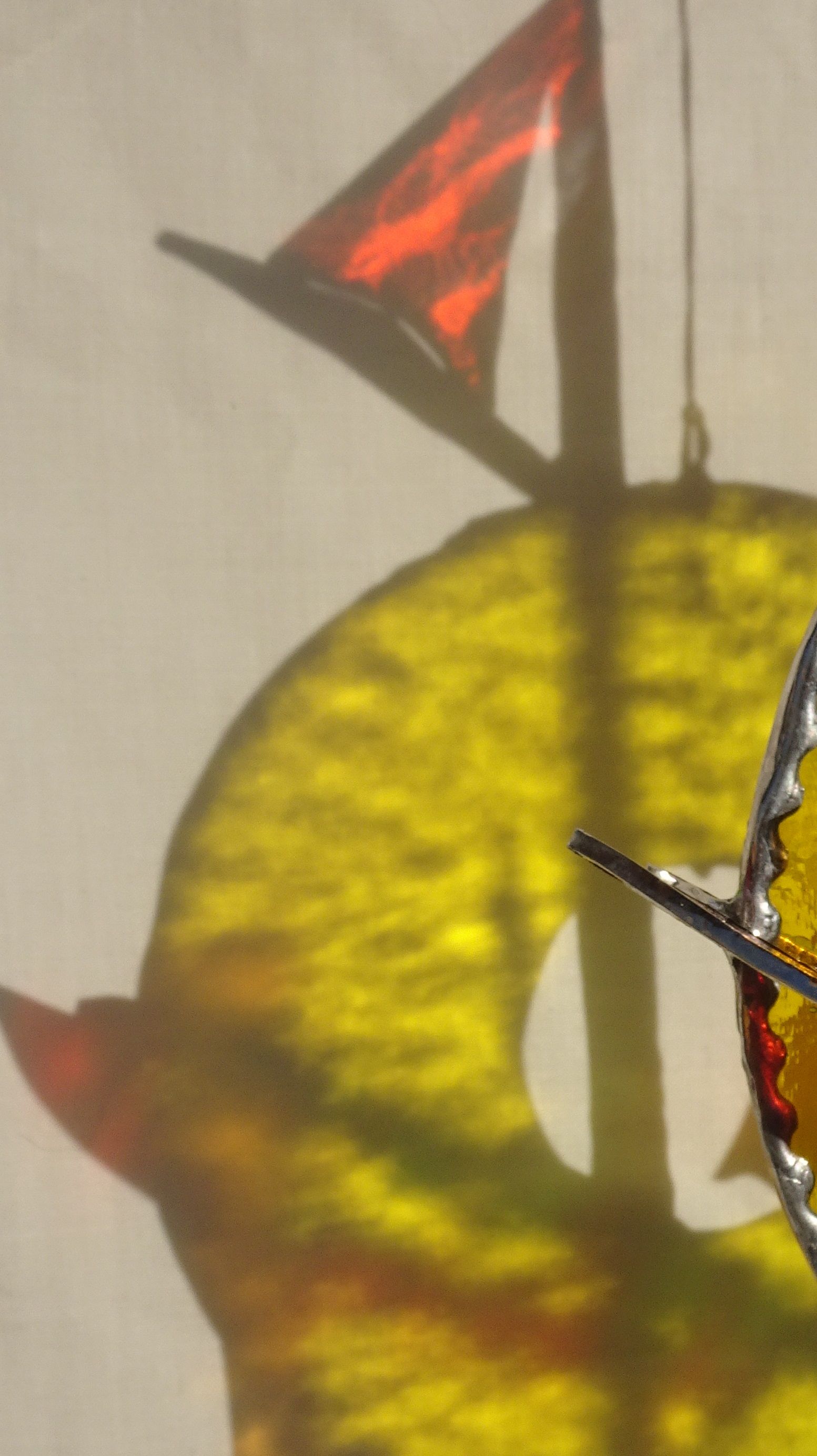 Après la coupe, vient la retouche peinture, réalisée à la main et fixée par une cuisson à 600°C dans un four verrier.